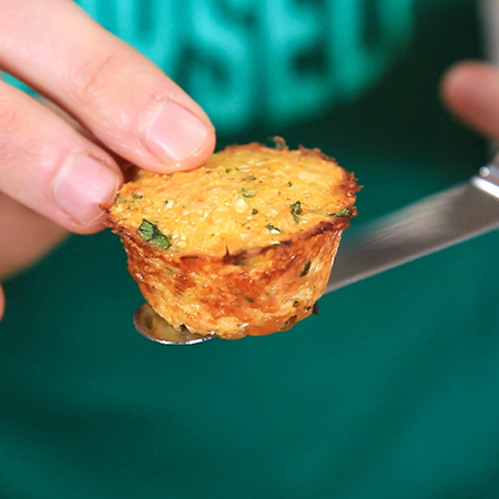 Tater tots are so tasty. They are also terrible for you. They are high in carbs and fat. They are unhealthy for everyone — even folks without blood sugar concerns. But this oven-baked cauliflower version made in mini muffin tins is much lower in carbs and fat, making it a savory, crispy treat anyone can enjoy. The recipe makes 19 mini muffin tots. You can decide what a serving is. A tot has 28.6 calories, .6 grams of net carbs and 1.8 grams of fat. Get the recipe.