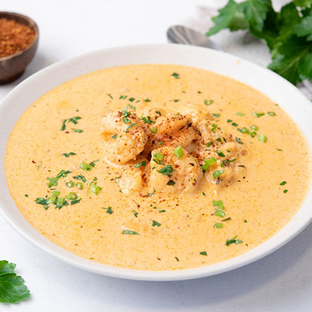 Seafood bisque is a highly seasoned, creamy French soup. Unlike a cream soup, where the cream is added at the end, in a bisque, the cream is added early in the soup’s creation. They usually use a wide range of shellfish, but the variety is different in every recipe.