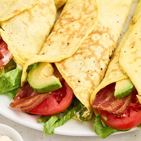 If you are looking for something more gourmet and less fast-food, we have a second burrito option for you. This one cuts out all the carbs from the tortillas by using egg wraps, and it’s filled with bacon, lettuce, tomato and avocado with mayo. To some folks, this sounds like a great twist on a burrito; to others, it’s a new form of a BLT. Either way, it’s a great breakfast! A serving has 411 calories, eight grams of carbs, four grams of fiber and 37 grams of fat. Get the recipe.