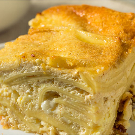 Unlike potato kugel, noodle kugel is sweet. Just like potato kugel, it’s high in carbs. But this version replaces the traditional egg noodles with spaghetti squash. It takes time and effort to make, as you have to roast a spaghetti squash to get your main ingredient. If you are used to cooking spaghetti squash, this recipe is a snap. If you have never used the squash before, we recommend reading the instructions a few times before beginning. The results are worth it, but it can be tricky. A serving has 187 calories, nine grams of carbs and 15 grams of fat. Get the recipe.